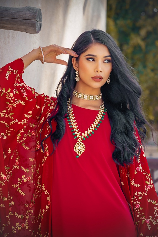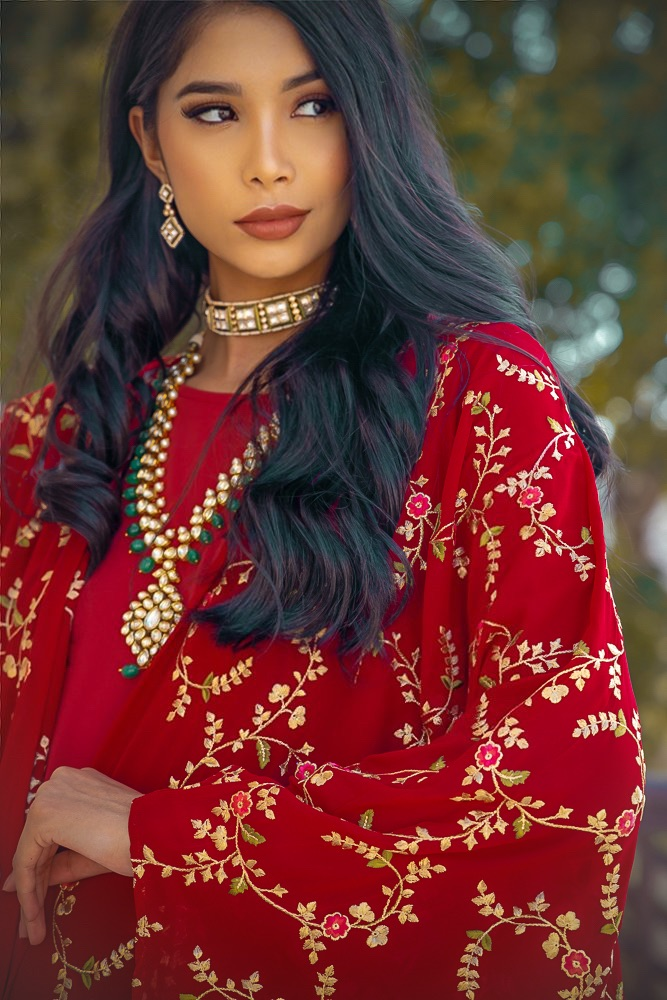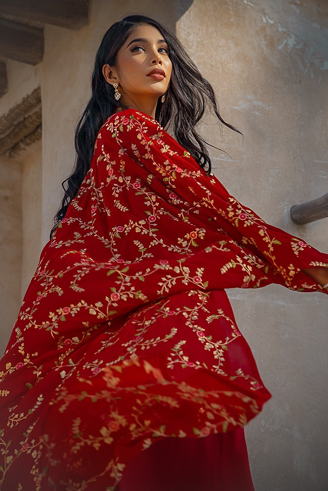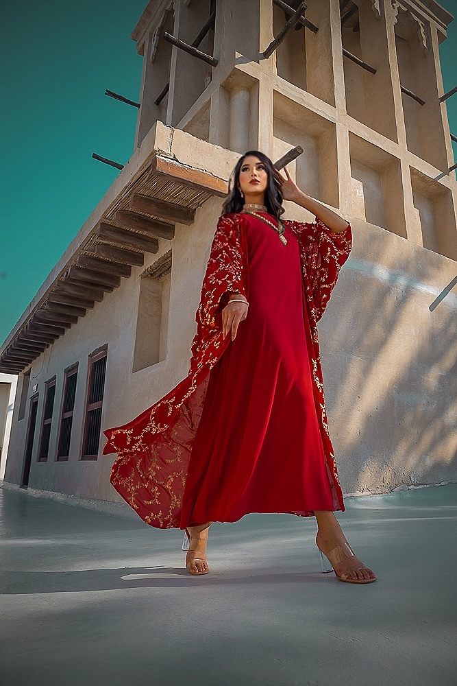 بشت شيفون مطرز مع درس داخلي الطول حسب الطلب